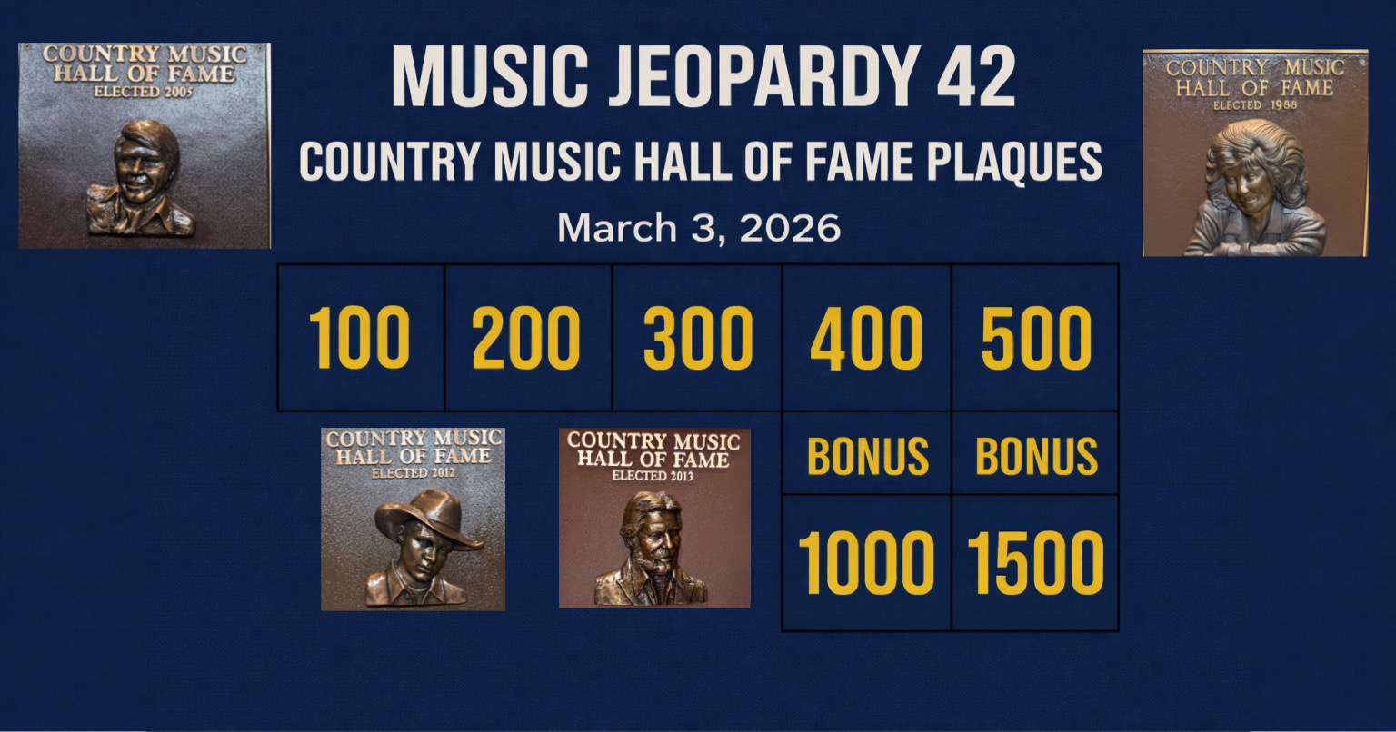(March 3, 2026) – Welcome to Music Jeopardy 42! It’s the weekly music challenge where the blog provides the clues… and you provide the responses. Each clue has point values — no dollars! The player(s) with the most points gets bragging rights.