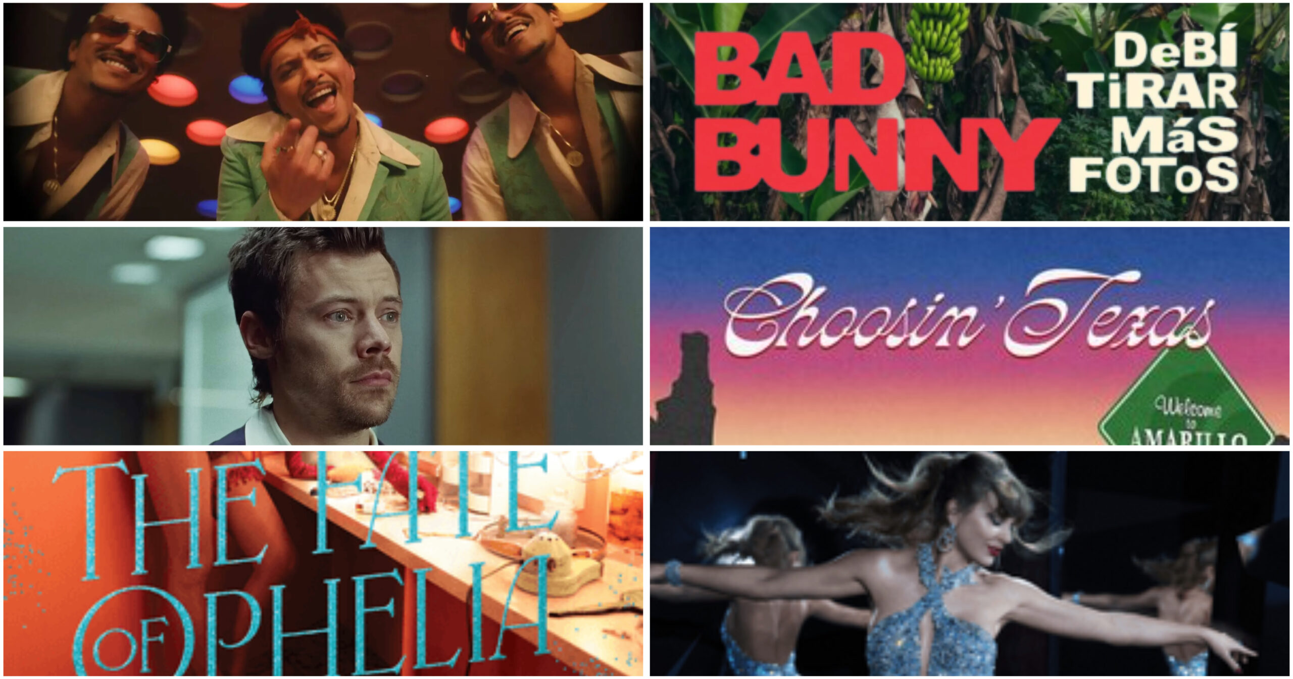 Beginning with this year’s second chart, when Taylor Swift’s “The Fate of Ophelia” returned to supplement its 2025 run, no song in 2026 has spent more than two consecutive weeks at No. 1. “Ophelia” held for a second-straight week (and tenth total) on Jan. 17 before being replaced by Bruno Mars’ “I Just Might,” the first single from his new album The Romantic. “Might” spent two weeks at the top before being succeeded in February by the consecutive one-week runs of Harry Styles’ “Aperture,” Ella Langley’s “Choosin’ Texas,” Bad Bunny’s “DtMF,” and Swift (again) with “Opalite.”