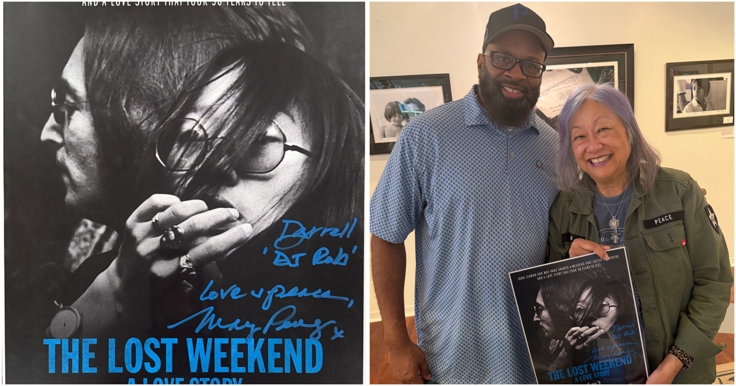 Before I left, I snapped a photo with Pang — she holding an autographed copy of her artwork I had just purchased: a photo of her and Lennon that provided a tangible reminder of what had truly been a “lost weekend” for them — and a surreal moment for me.